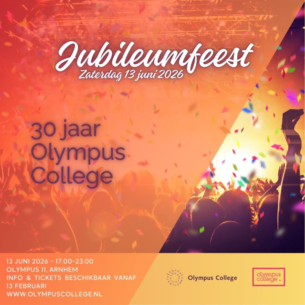 Op zaterdag 13 juni 2026 organiseert het Olympus College een jubileumfeest.